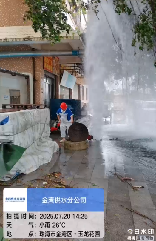 7月20日下午,金灣文華路11號的消火栓被強風刮倒的大樹撞斷,3米高的水柱在狂風中噴涌。接到消息后,搶修人員立即穿著被雨水浸透的工作服匆匆趕到,參與搶險的黃師傅回憶道,“當時風雨未停,但看到噴涌的水柱,就顧不上那么多了?!贝舜螕岆U僅用30分鐘處理完畢,無用戶受影響,創造了臺風天氣搶修新速度。